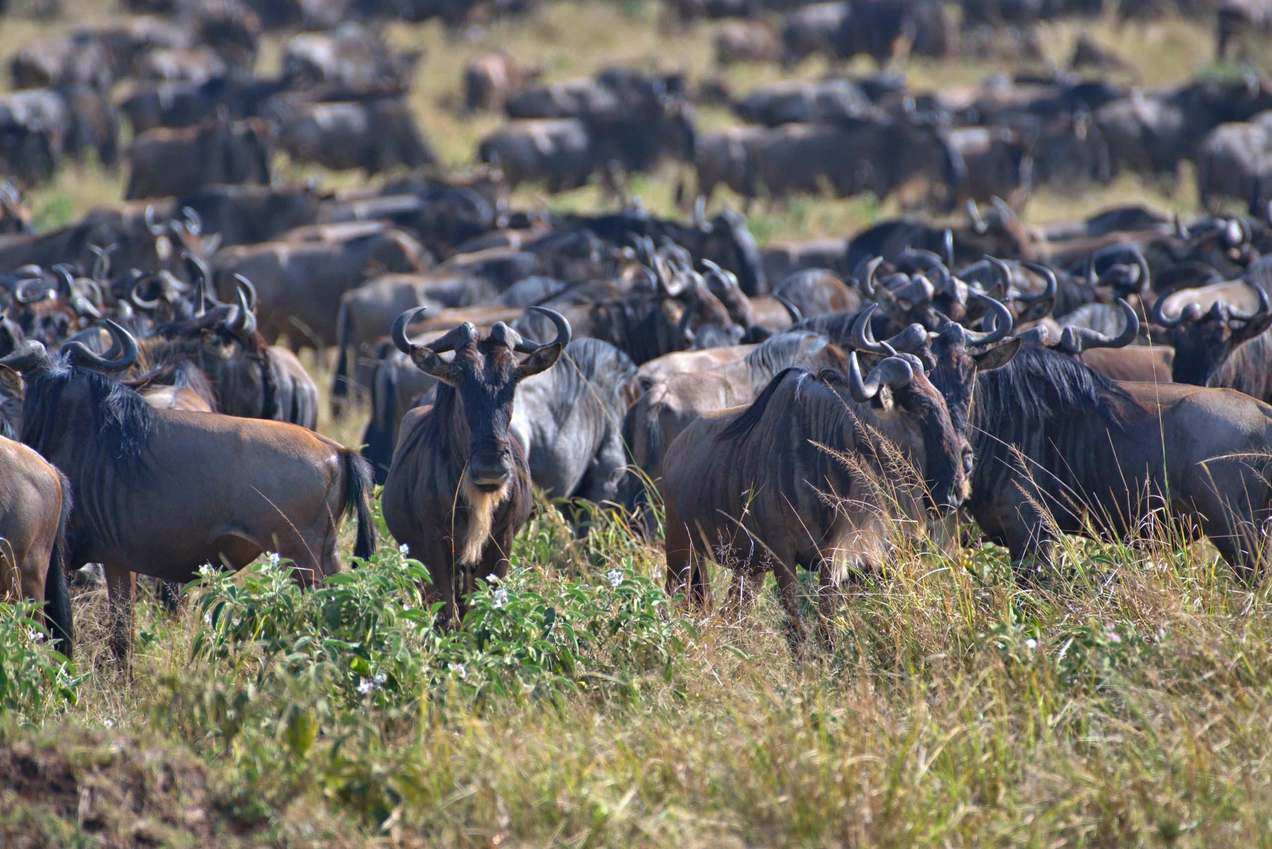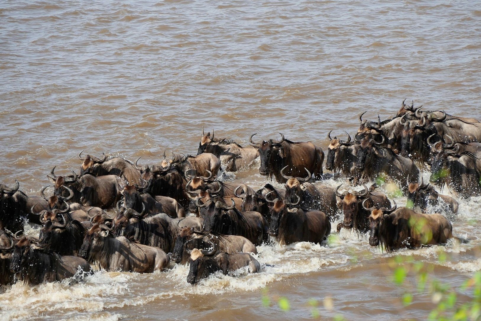 Nowhere in the world is there a movement of animals as immense as the wildebeest migration, over two million animals migrate from the Serengeti National Park in Tanzania to the greener pastures of the Maasai Mara National Reserve in Kenya during July through to October.